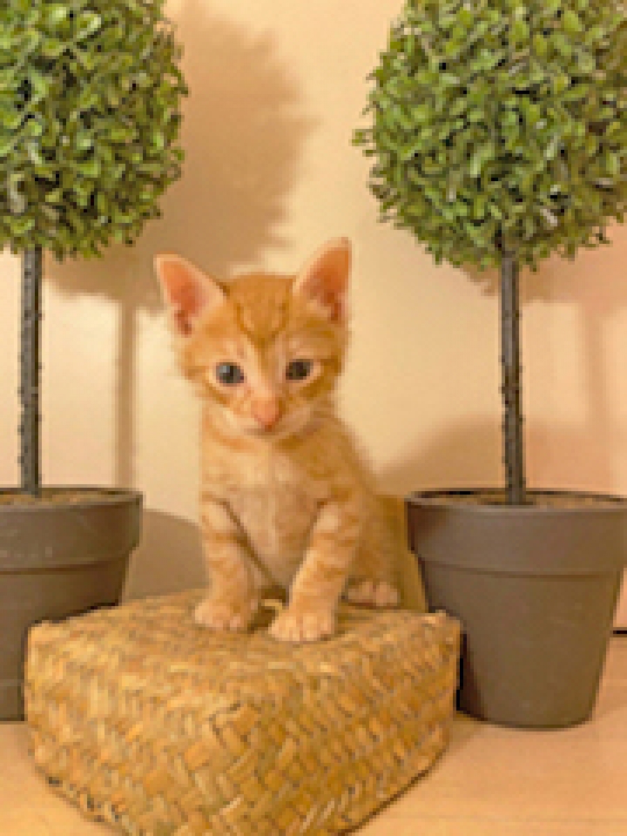 Είναι μόλις 3 εβδομάδων, απολαμβάνει πολύ την ανθρώπινη επαφή, του αρέσουν τα παιχνίδια με κουδουνάκια και τα πάει καλά με τα σκυλιά.