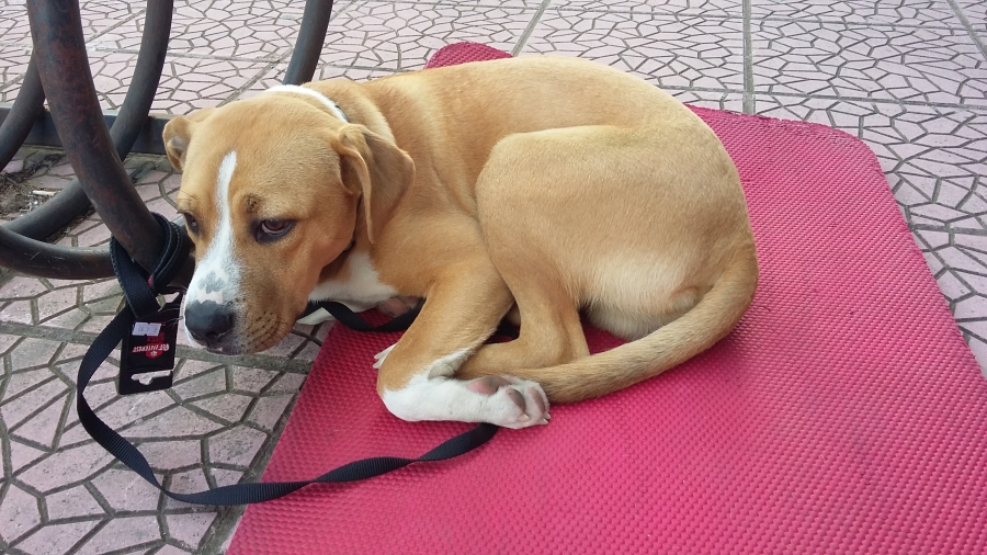 Είναι πολύ φιλικός, μικρότερος του 1 έτους, κανελί με άσπρη κοιλίτσα και ποδαράκια άσπρα με πατουσάκια πάνω από τη μύτη του. Φοράει περιλαίμιο μαύρο με σχέδια πολύχρωμα.