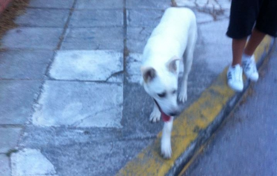 - Άλλες πληροφορίες: Μάλλον ημίαιμο λευκό Λυκόσκυλο, φοράει Μπλε λουράκι