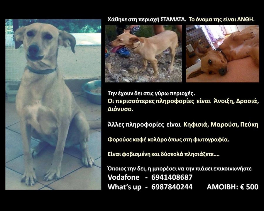 - Άλλες πληροφορίες: Την έχουν δει στη ΔΡΟΣΙΑ, ΜΑΡΟΥΣΙ και ΚΑΤΩ ΠΕΥΚΗ