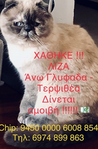 ΧΑΘΗΚΕ ΘΗΛΥΚΗ ΓΑΤΑ - ΔΙΝΕΤΑΙ ΑΜΟΙΒΗ